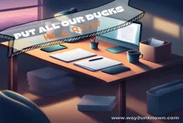 "Putting all our ducks in a row" refers to the act of organizing or arranging things in a systematic and orderly manner, akin to aligning ducks in a row. It symbolizes ensuring that all necessary tasks, preparations, or details are meticulously coordinated to achieve a desired outcome. The phrase implies thorough preparation and readiness for action, minimizing the likelihood of unexpected complications or setbacks.