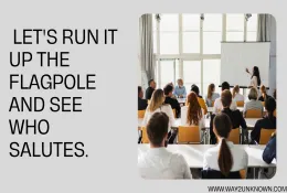 “Let’s run it up the flagpole and see who salutes” is an idiom that means to propose an idea or suggestion to see how people react to it or if they show support for it. By using this idiom, it encourages open discussion and collaboration, helping to ensure that decisions are well-informed and supported by the team or stakeholders involved.